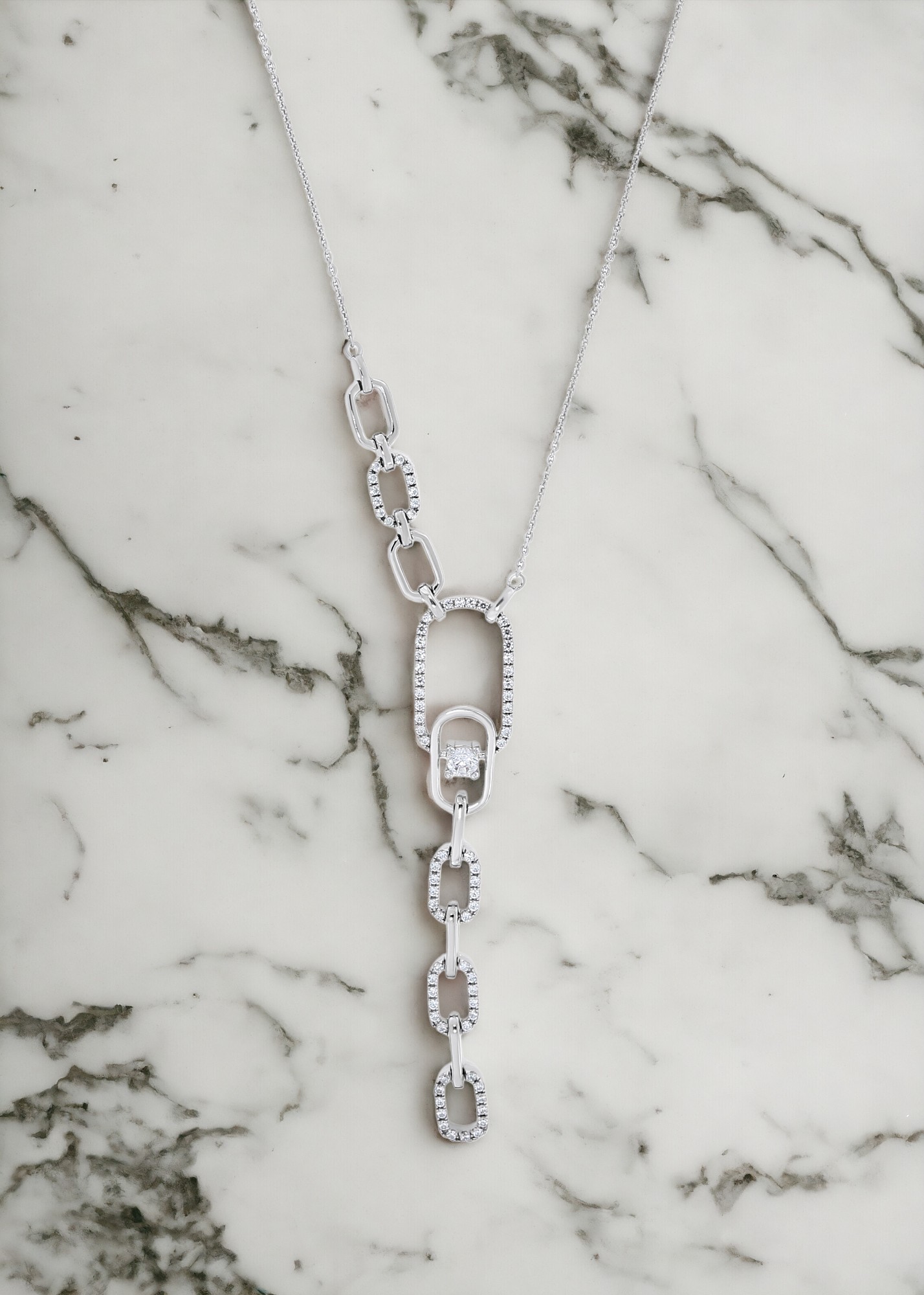 The Versatile Link Diamond Lariat features interlinked diamonds in a flexible design, allowing you to style it multiple ways while radiating timeless sophistication and brilliance.
