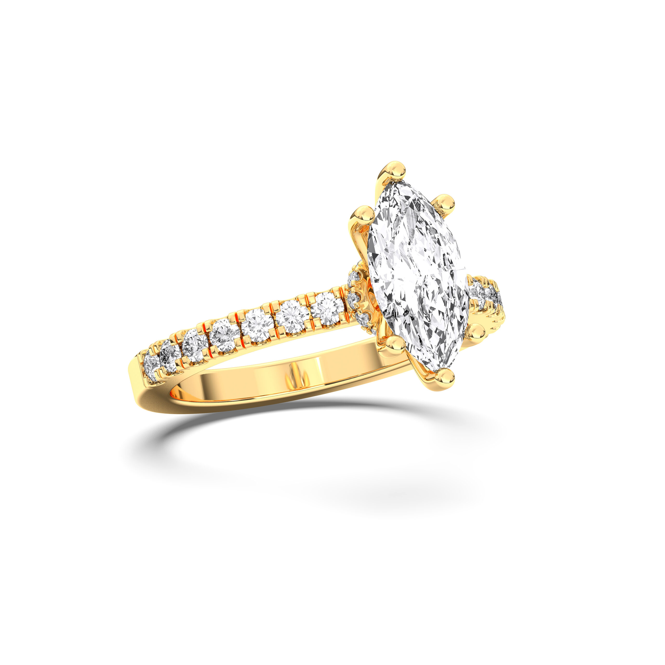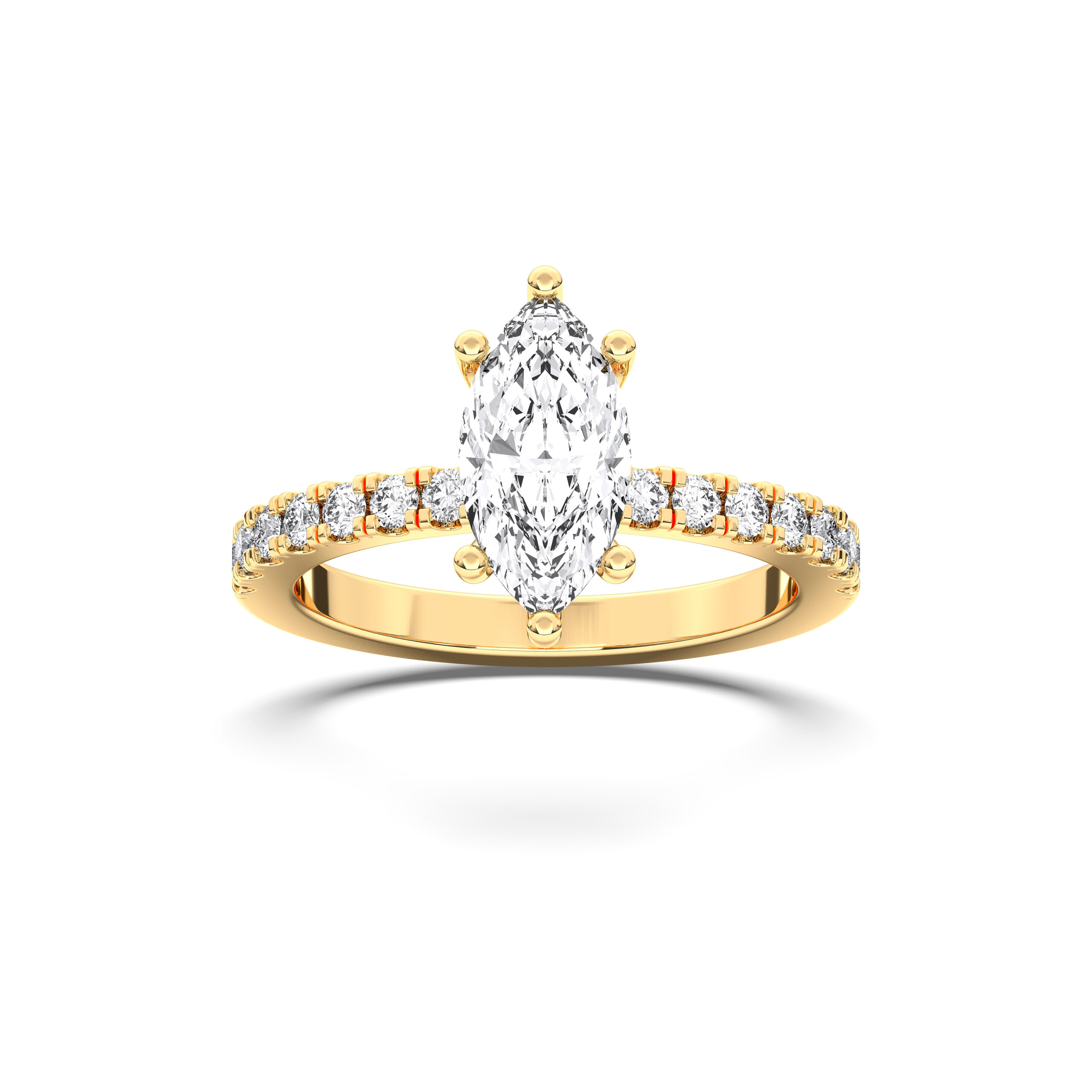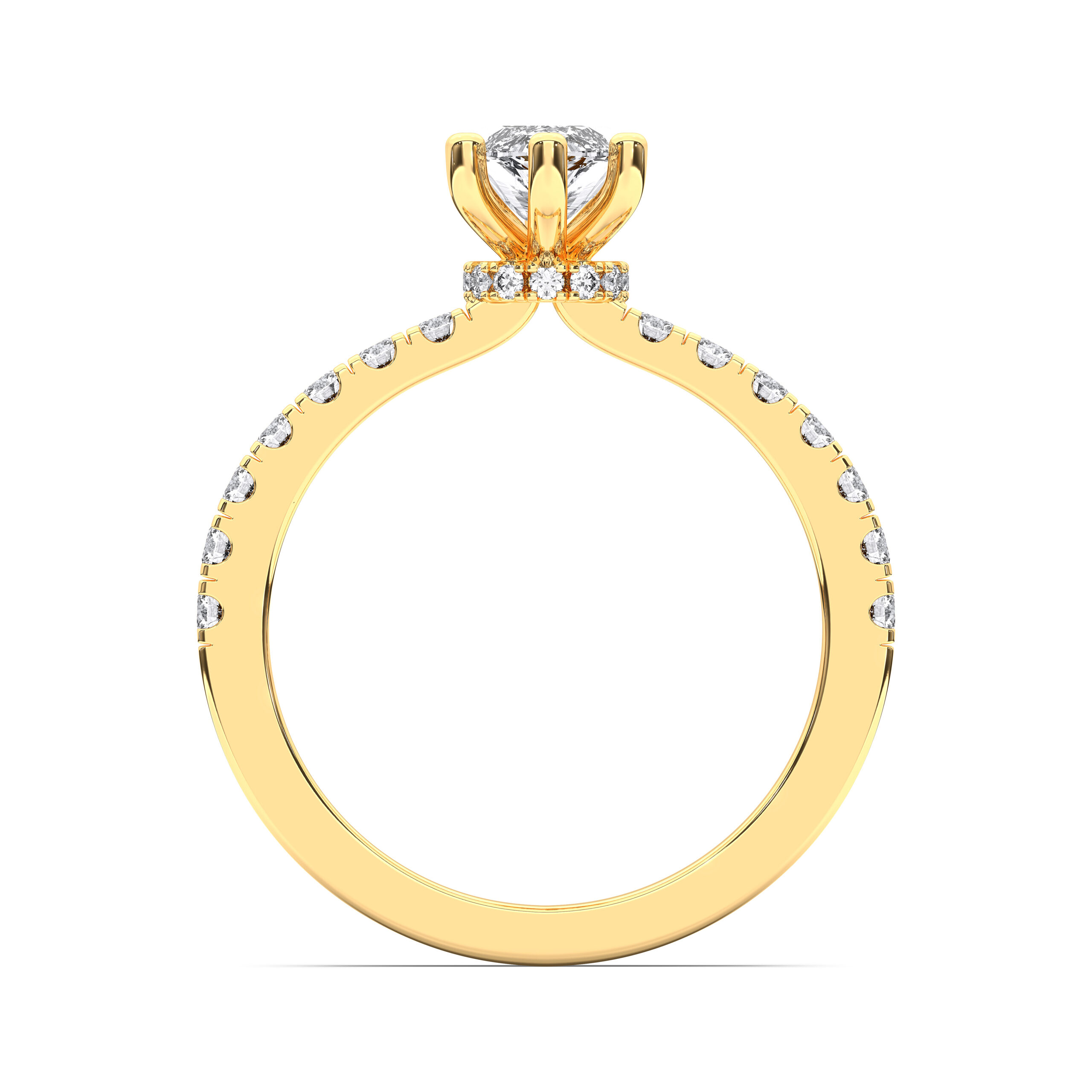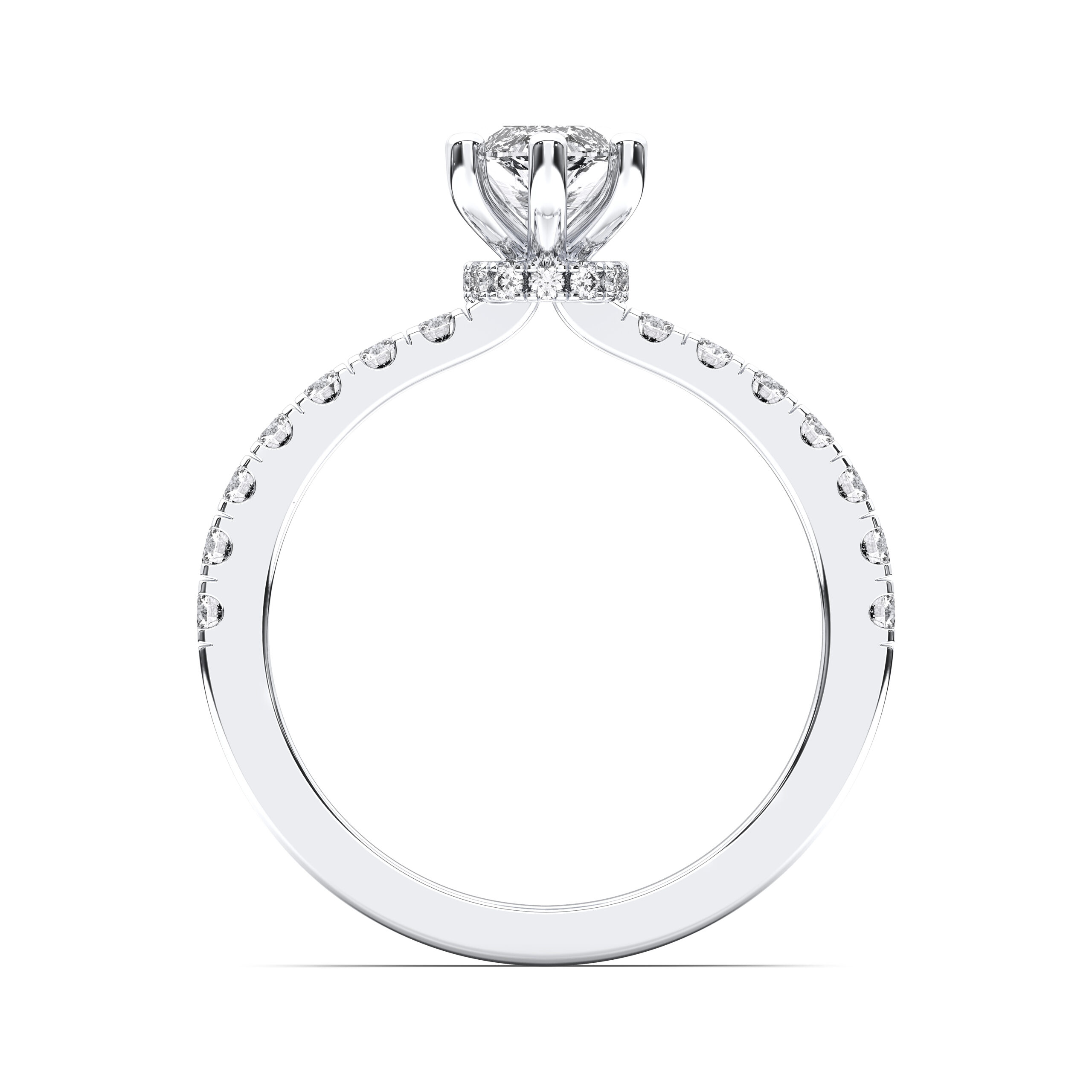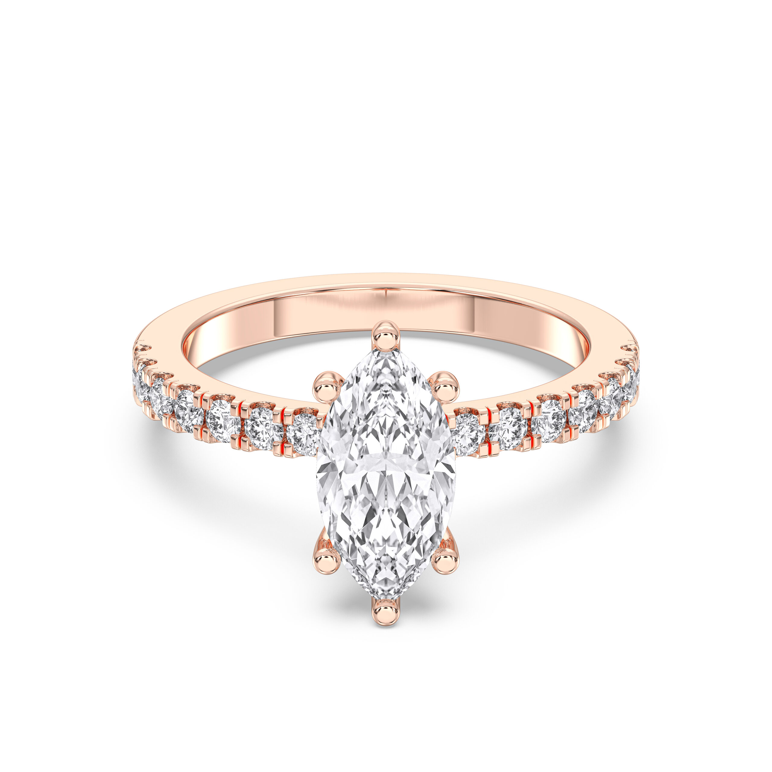 This design highlights a stunning marquise-cut diamond encircled by a hidden halo of pavé-set diamonds. Its elongated shape flatters the hand, while the hidden sparkle adds modern allure. A ring for those who crave rare beauty and sophistication.