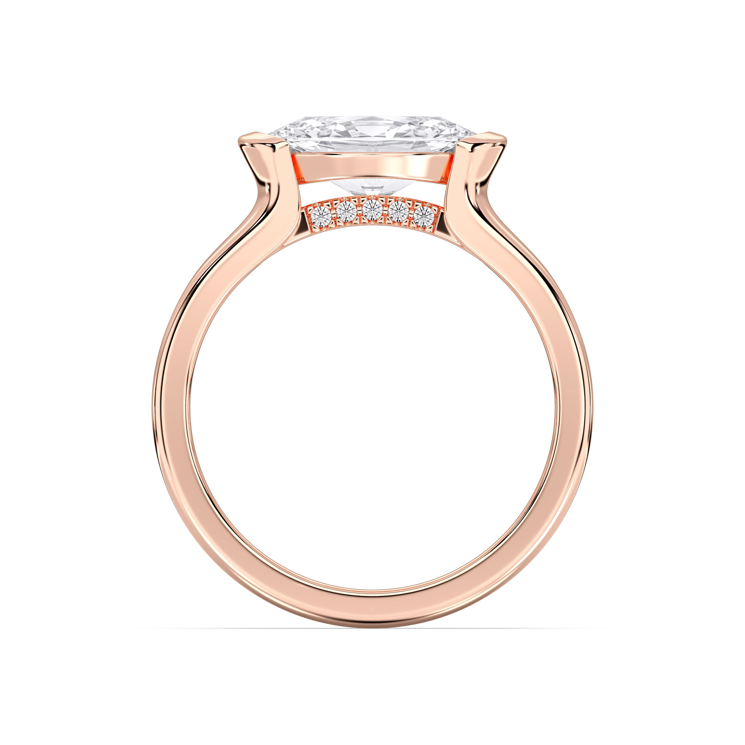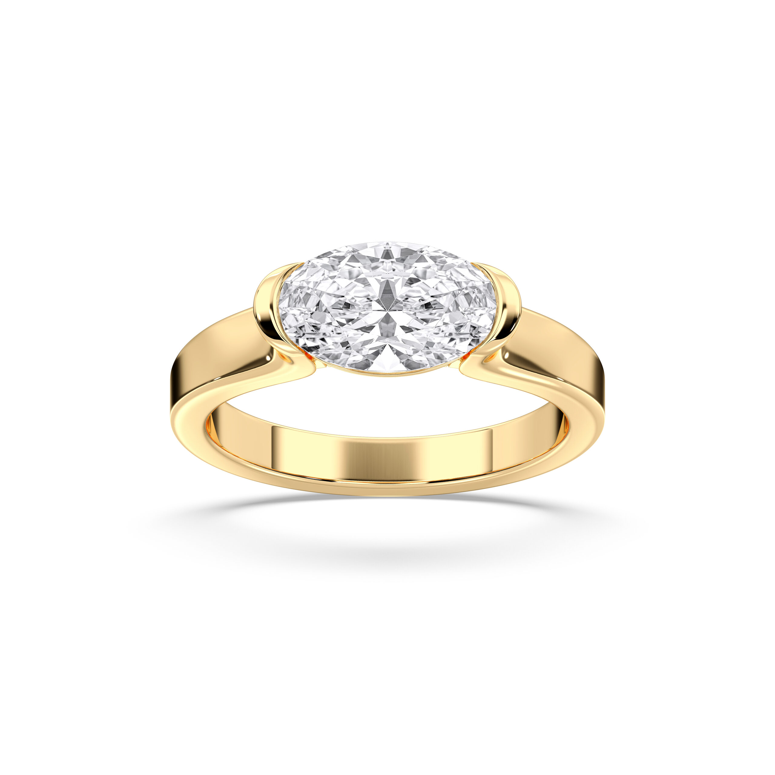 This Oval East-West Solitaire Ring transforms the classic oval into a modern, standout piece. The horizontal setting elongates the finger and brings a fresh, fashion-forward appeal to an iconic shape.