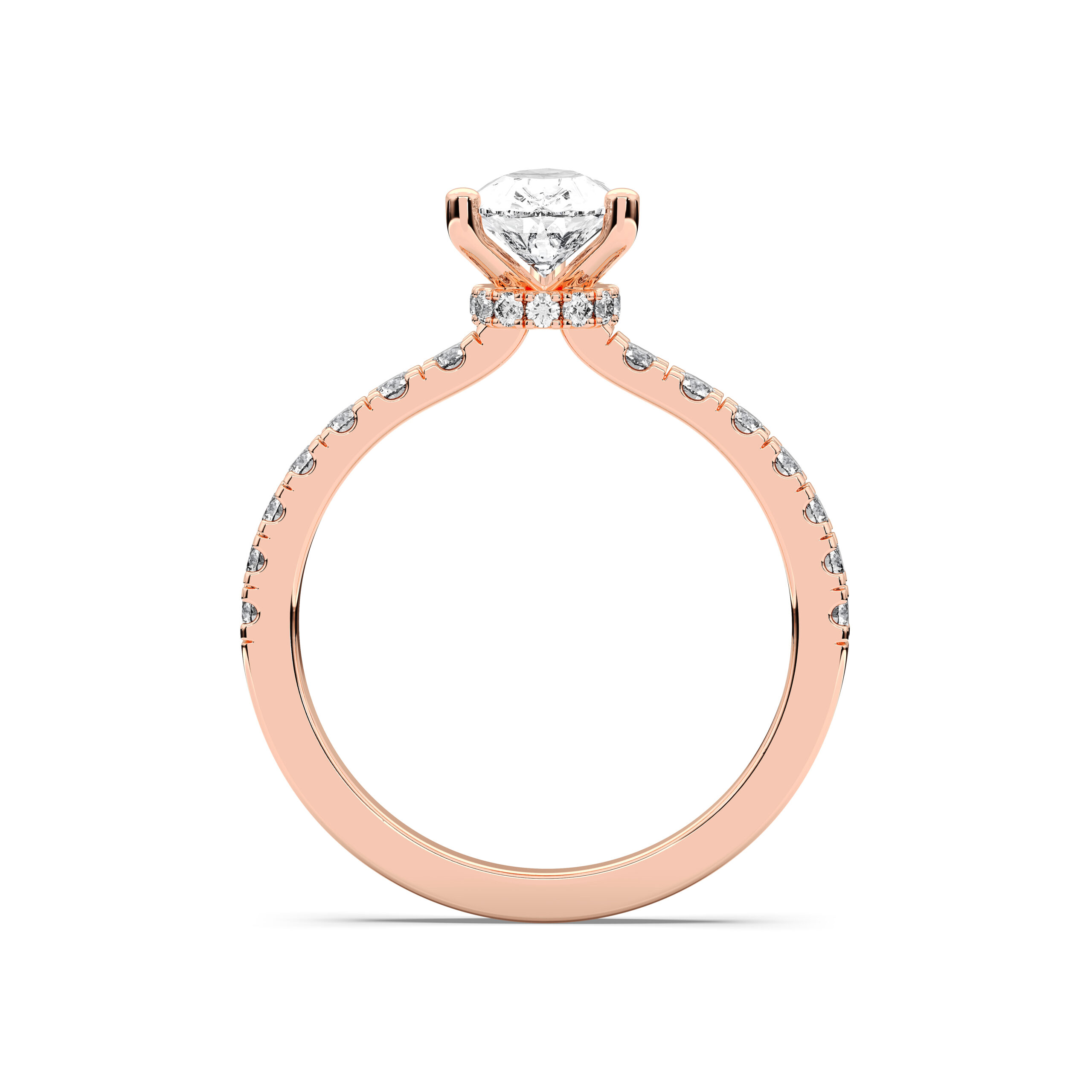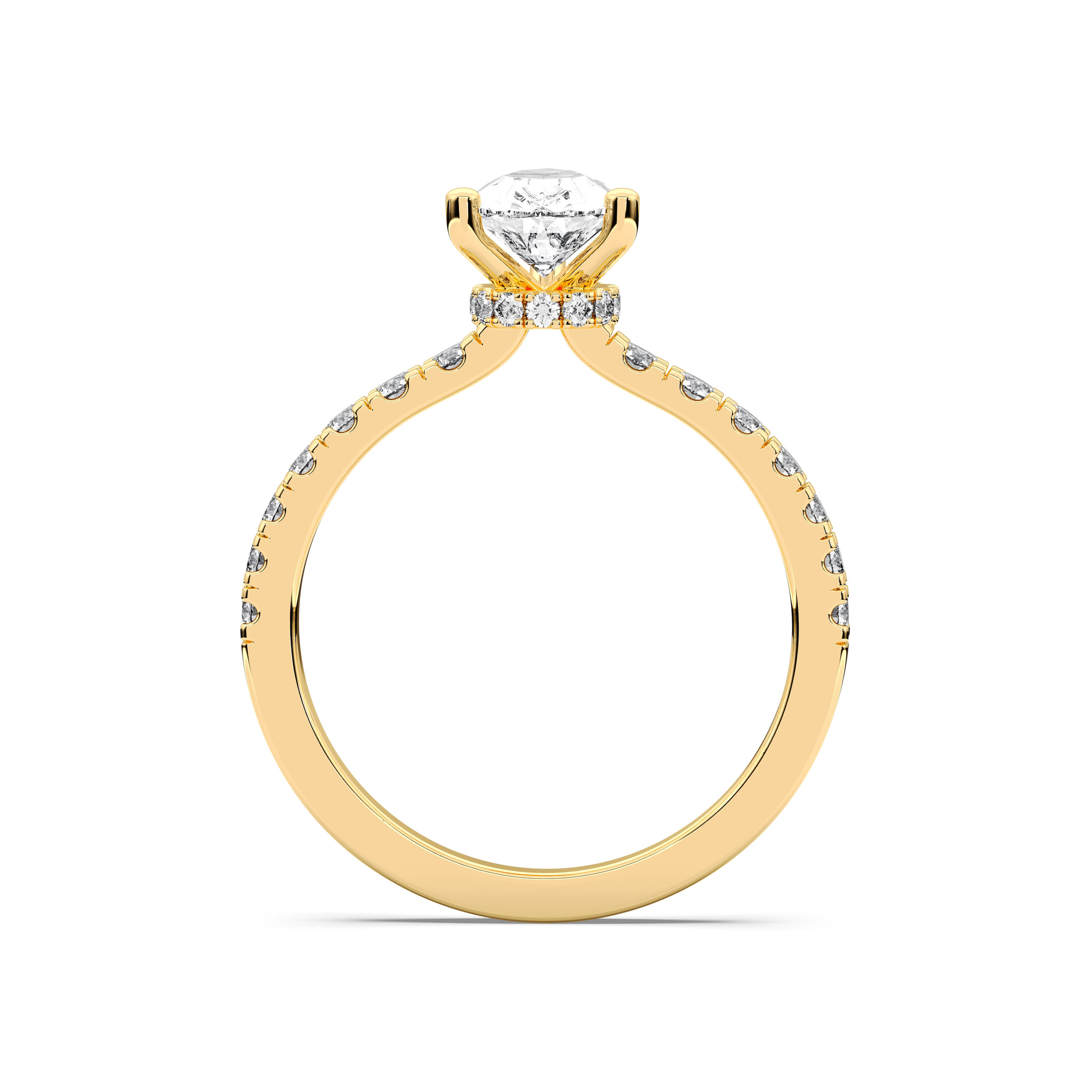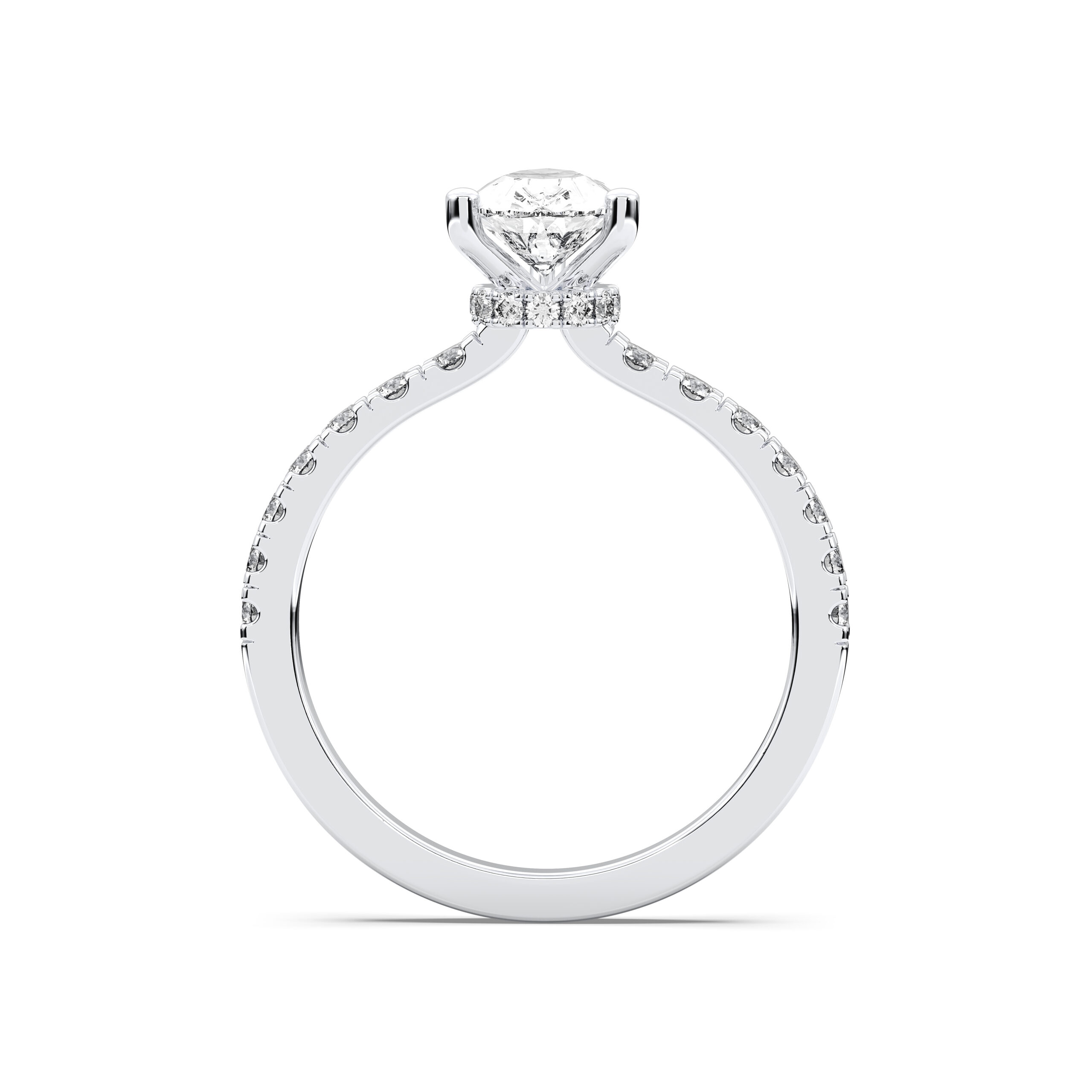 Gracefully merging elegance with sophistication, the Pear Hidden Halo Pave Ring features a pear-shaped centerpiece framed by a discreet halo of sparkling pavé diamonds. The hidden halo enhances brilliance while maintaining a sleek, modern silhouette. A royal choice for those who appreciate subtle luxury and captivating beauty.