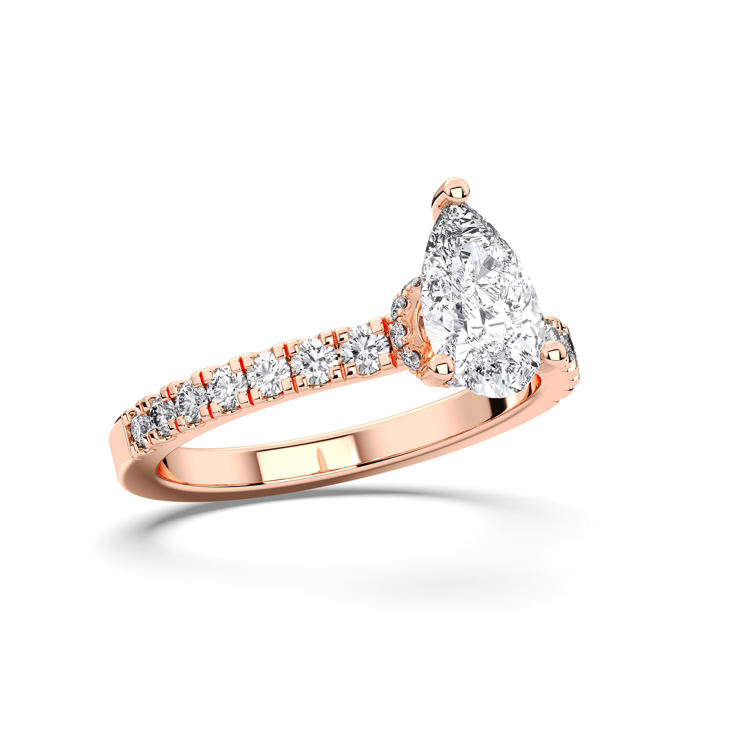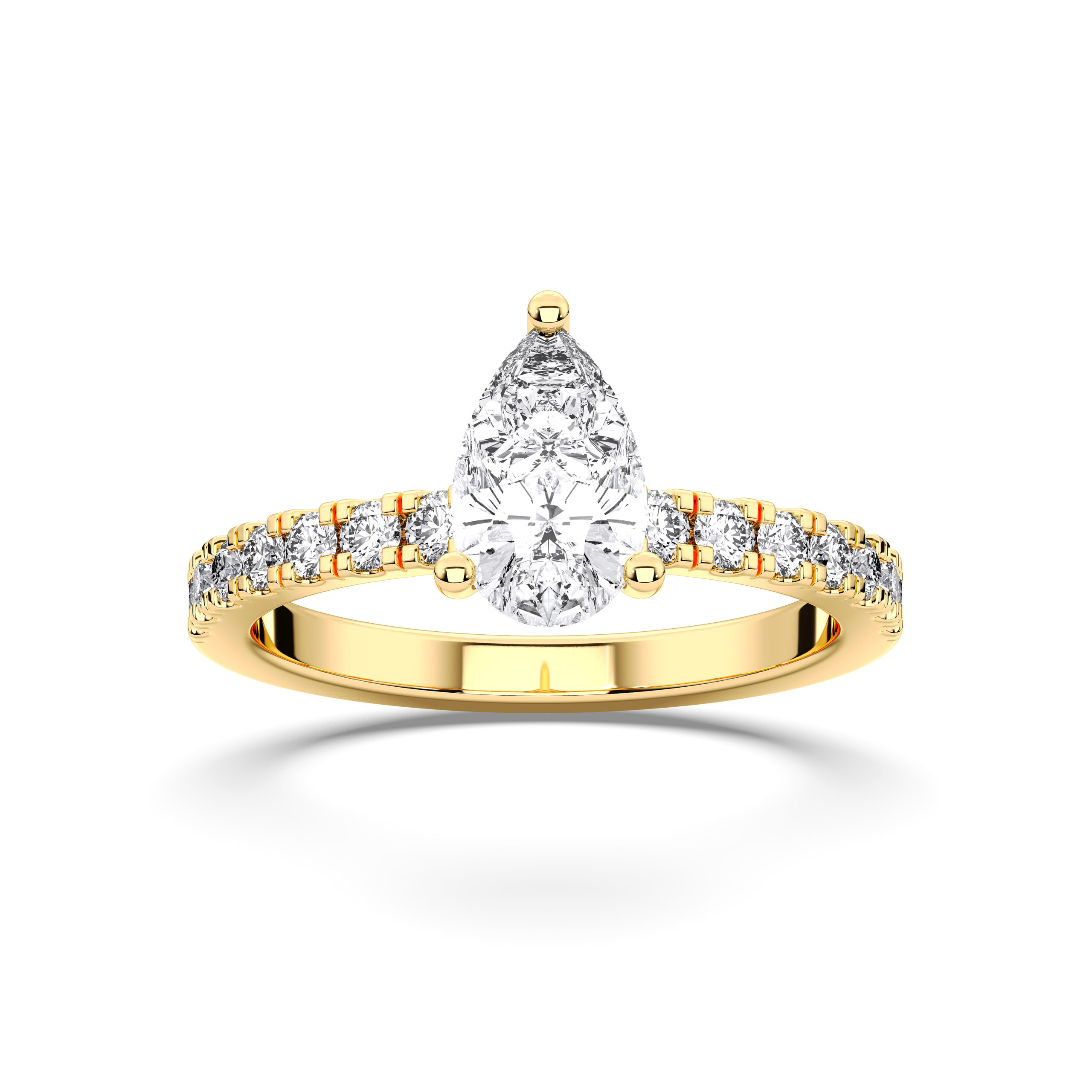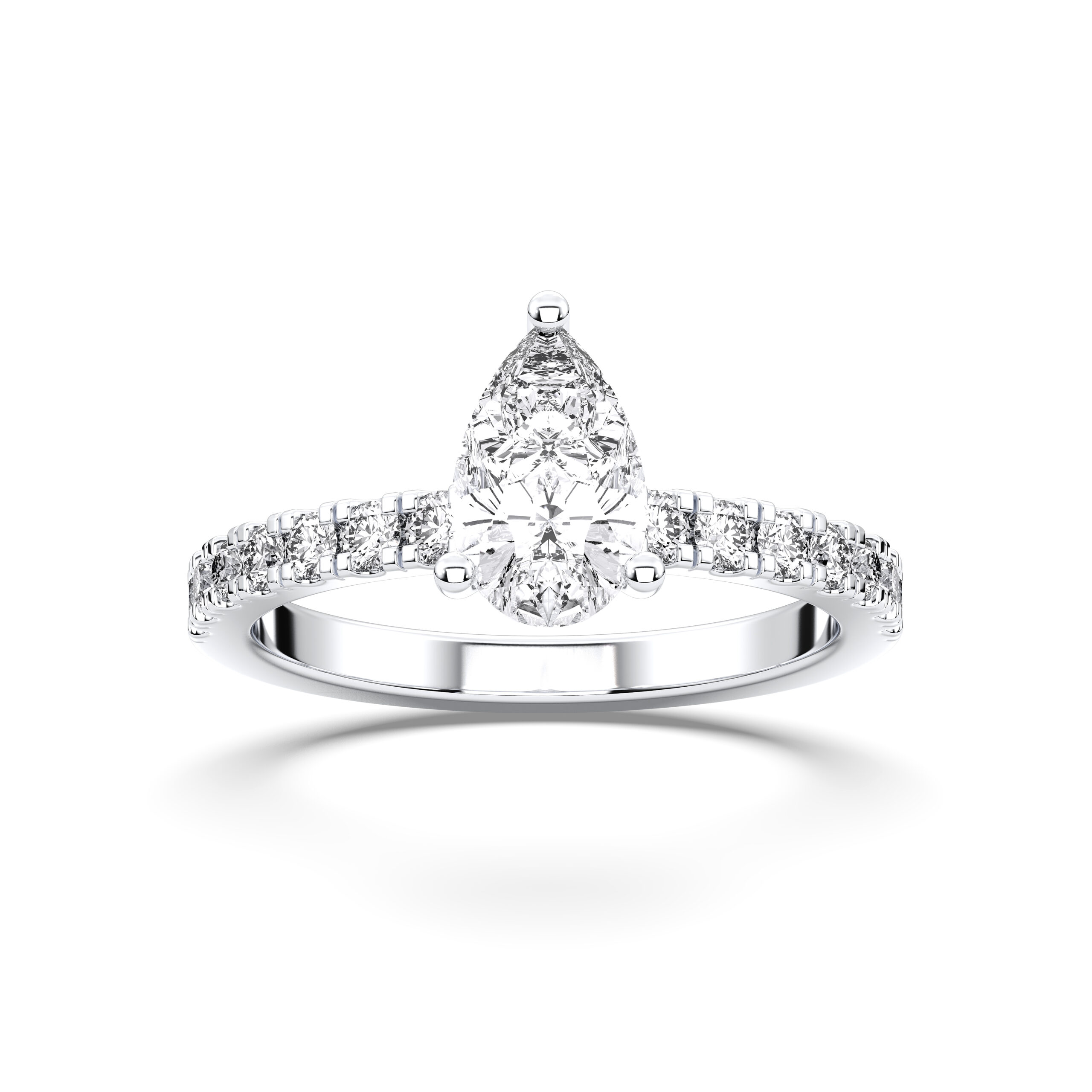 Gracefully merging elegance with sophistication, the Pear Hidden Halo Pave Ring features a pear-shaped centerpiece framed by a discreet halo of sparkling pavé diamonds. The hidden halo enhances brilliance while maintaining a sleek, modern silhouette. A royal choice for those who appreciate subtle luxury and captivating beauty.