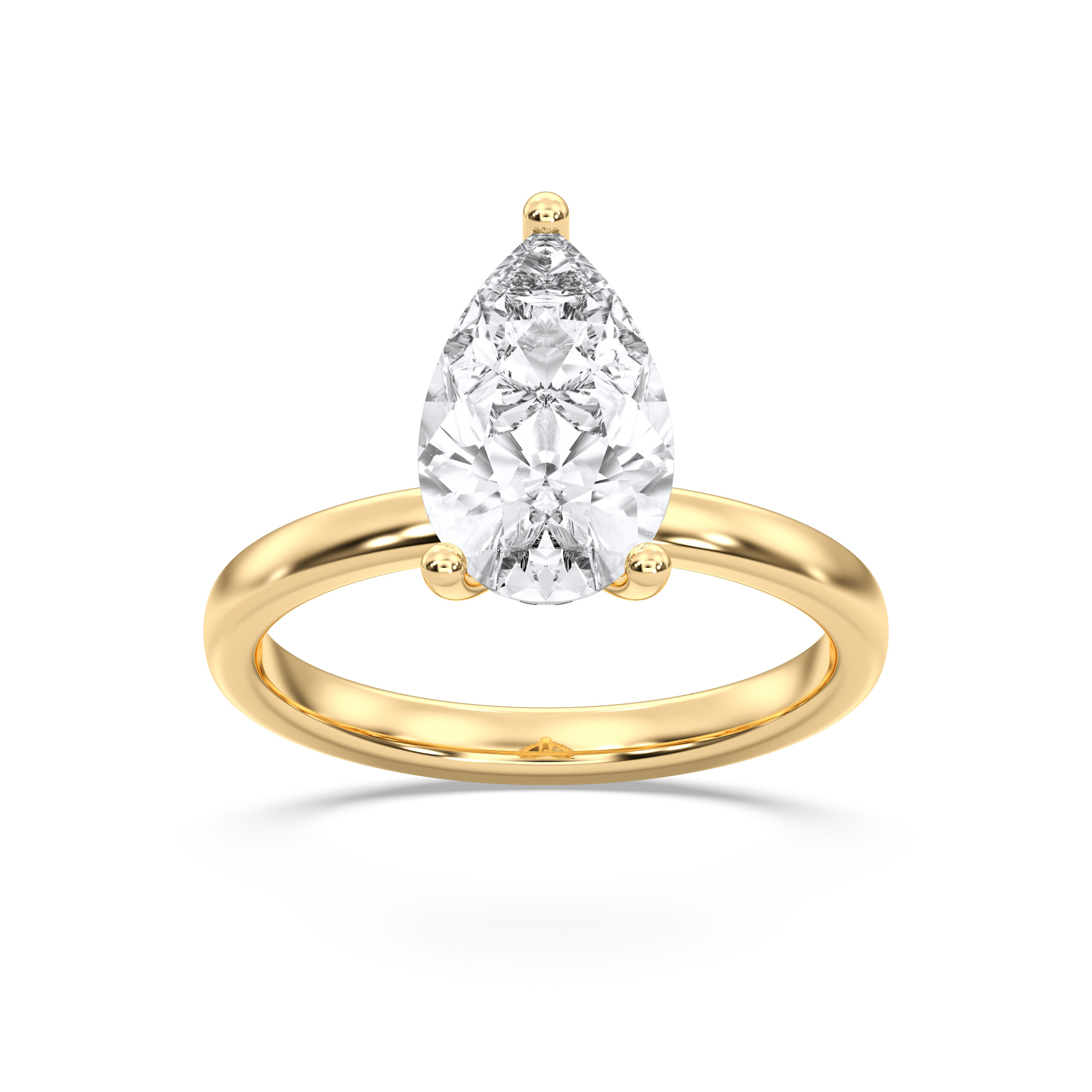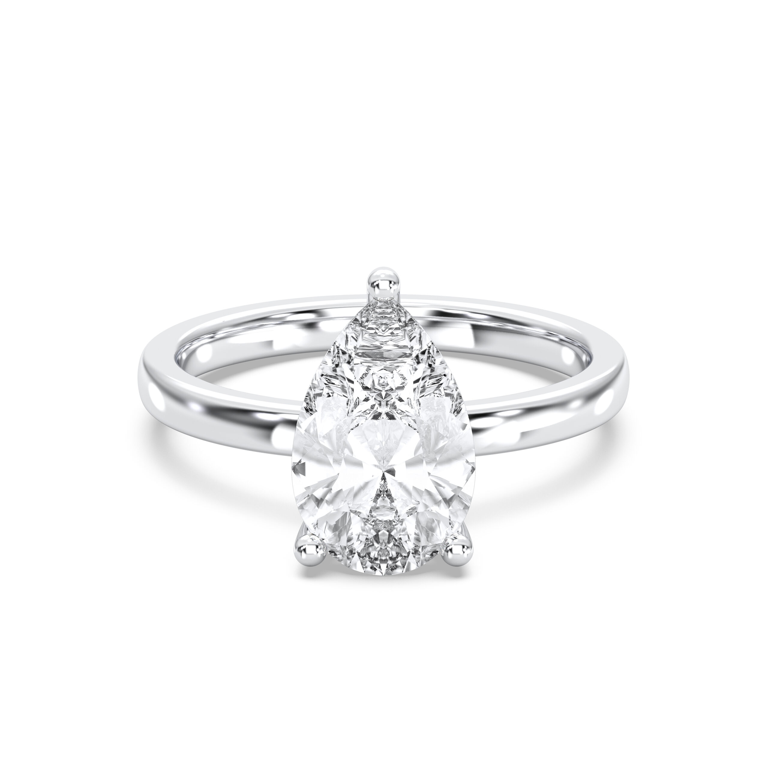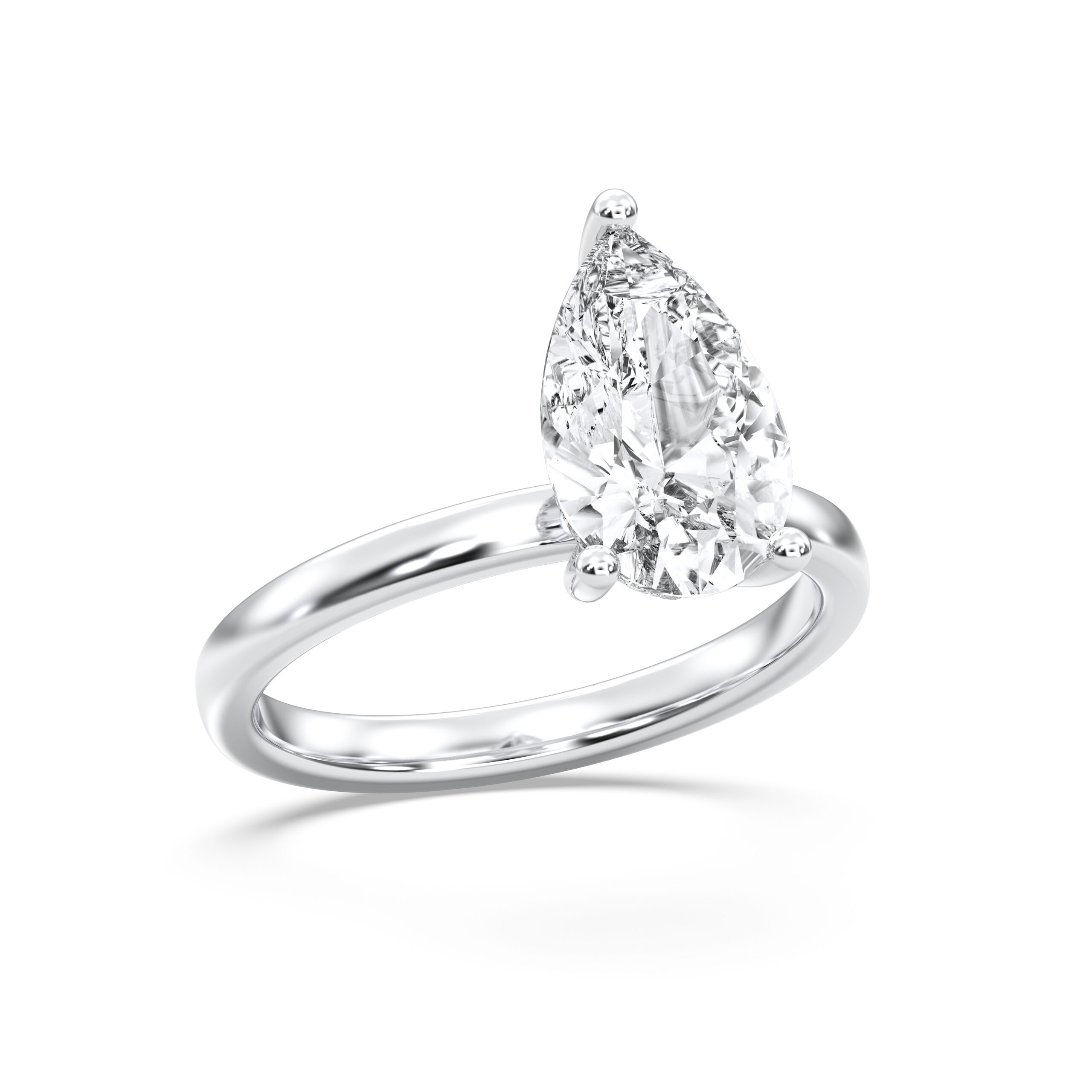 Featuring a pear-shaped diamond elevated above a secret halo, this ring’s unique design enhances sparkle while maintaining a sleek silhouette. A modern masterpiece embodying passion, elegance, and grace.