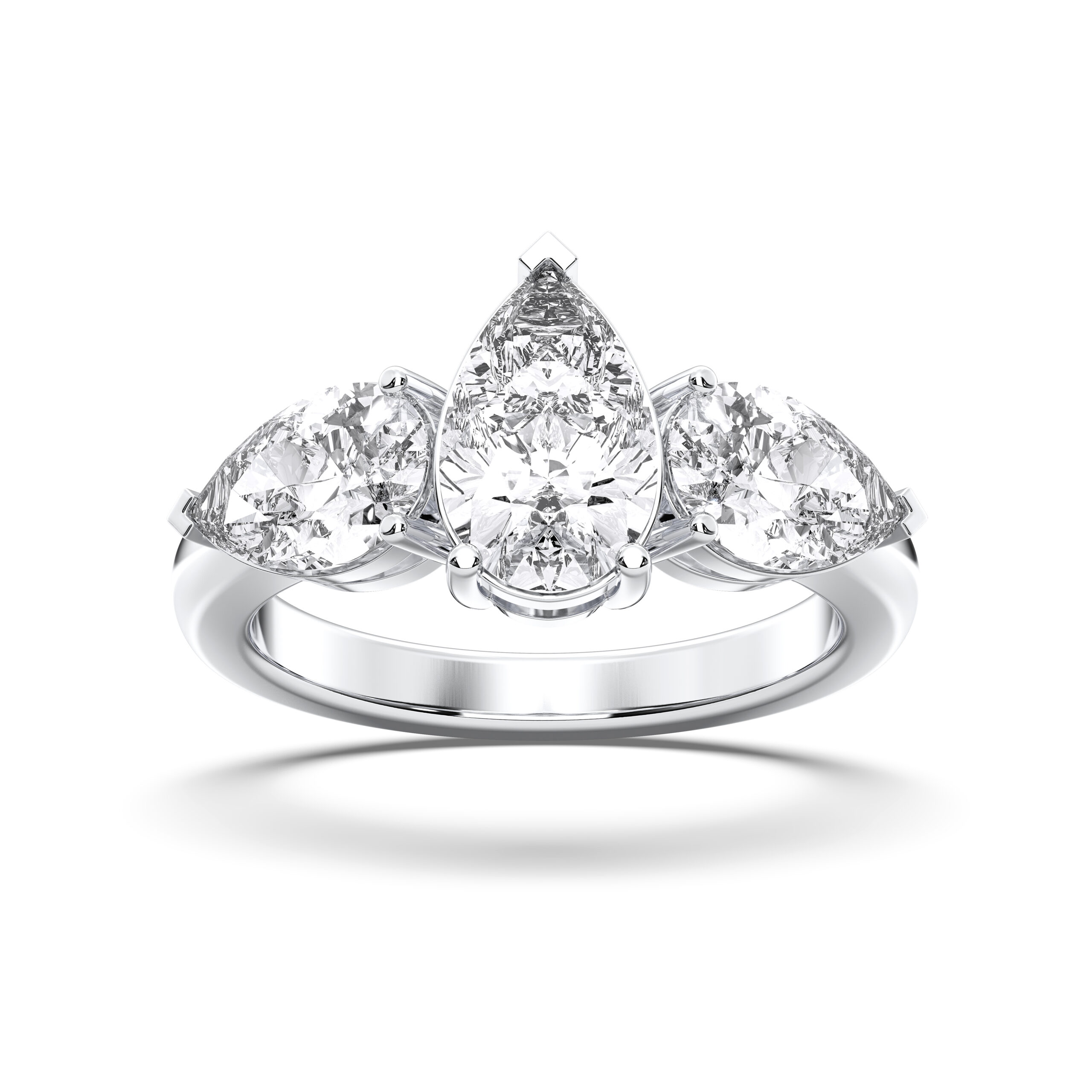Three pear-cut stones — a radiant tribute to past, present, and future love.