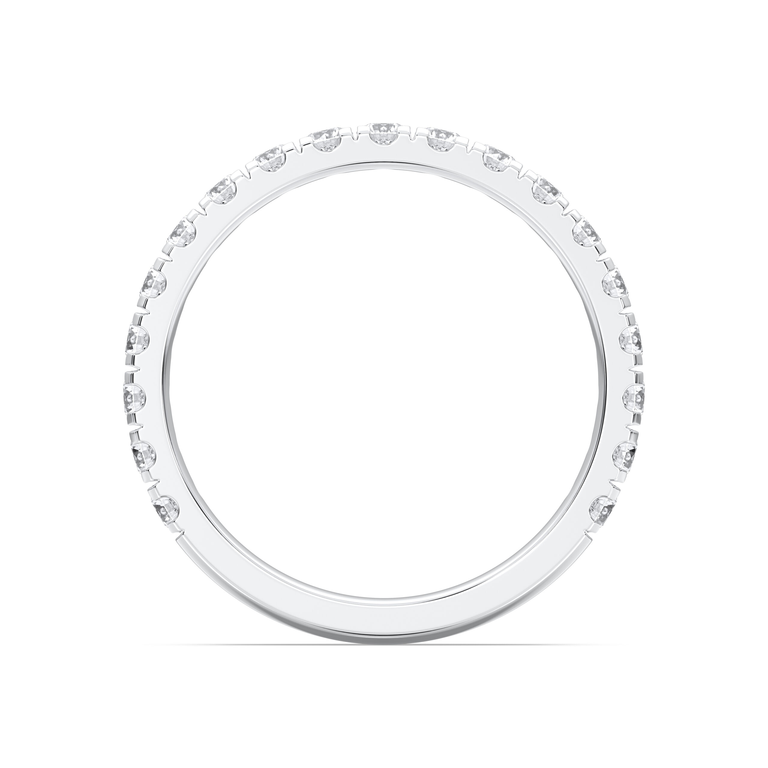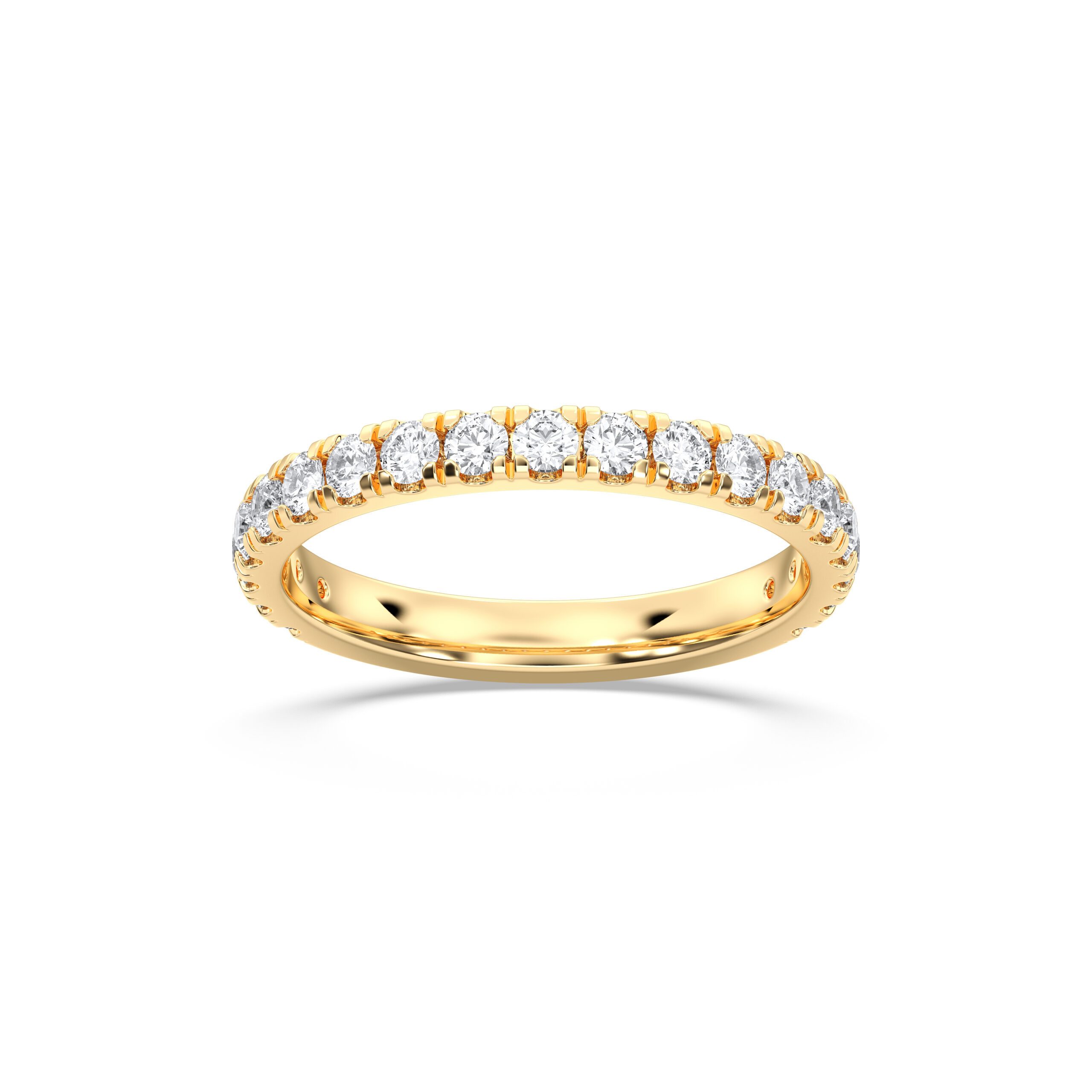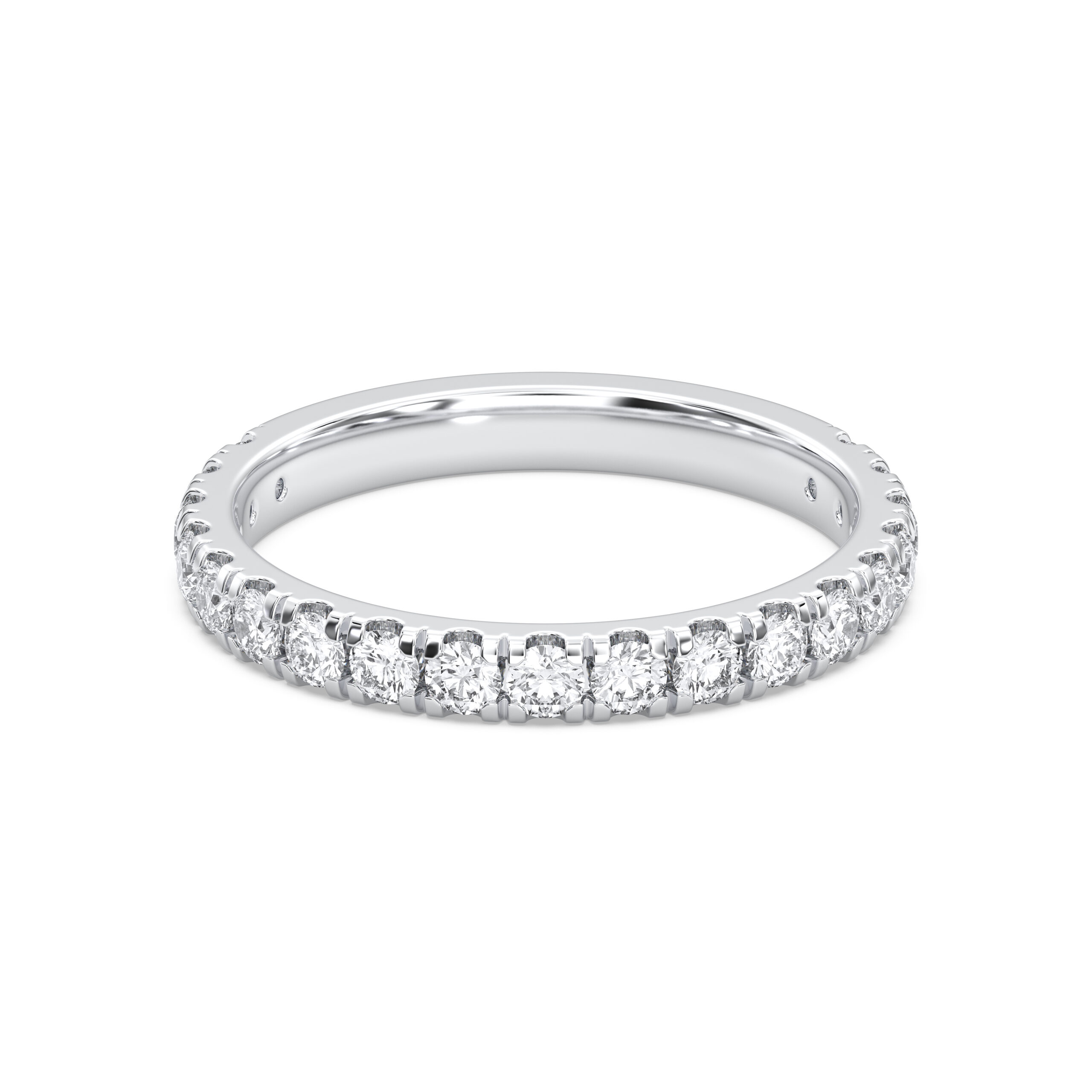 This Round 3/4 Anniversary Band combines comfort and radiance with diamonds set across 75% of the ring. Ideal for daily wear, the open back ensures easy resizing while preserving the luxurious sparkle of perfectly matched diamonds.