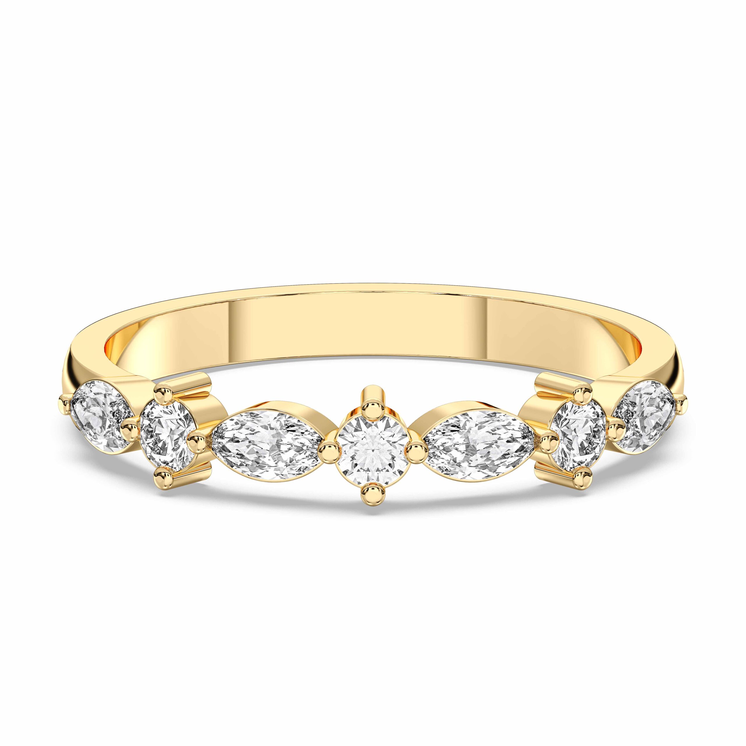 The Round-Marquise Anniversary Band blends two iconic diamond shapes for a beautifully rhythmic, feminine design. A perfect piece for stacking or celebrating milestones.