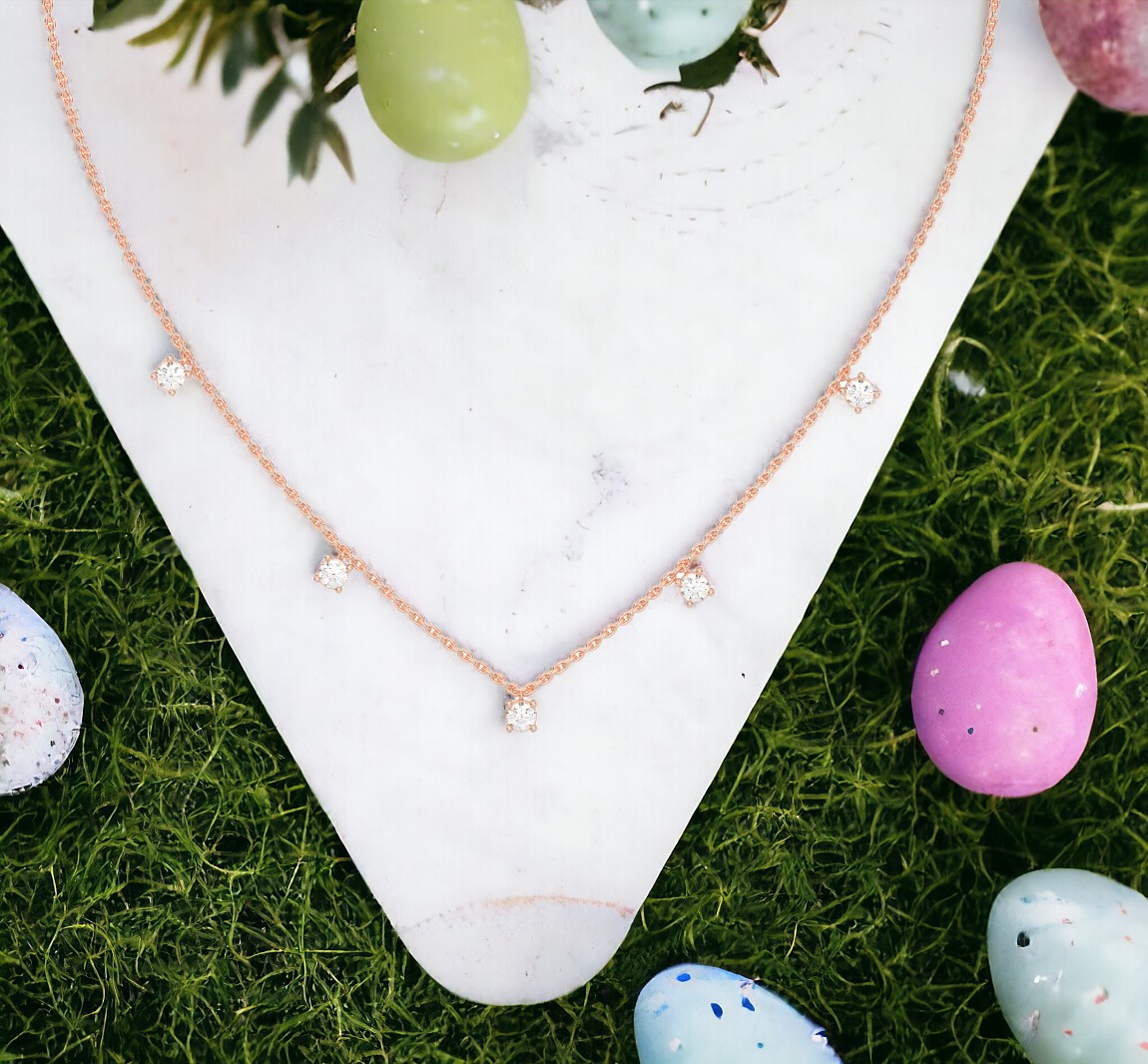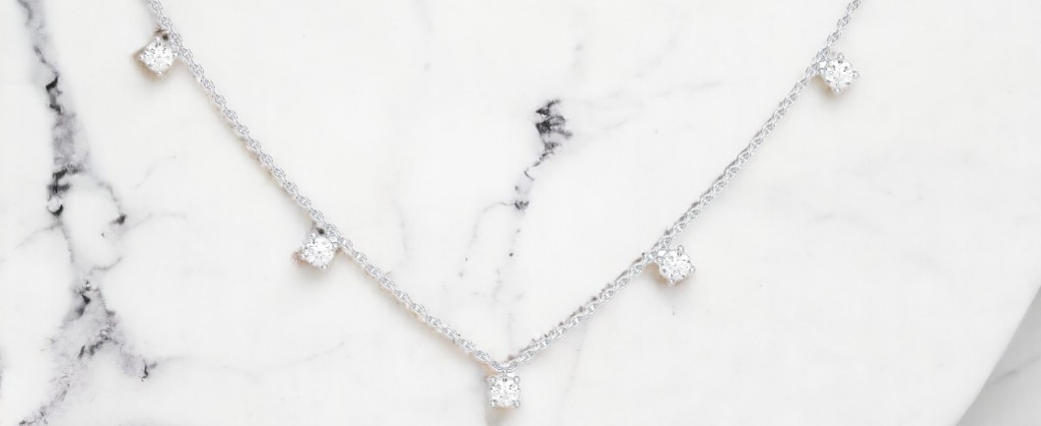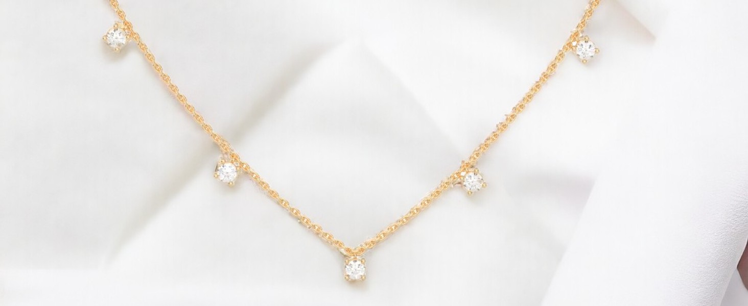The Starlight Station Necklace features evenly spaced diamonds along a delicate chain, creating a radiant, cosmic-inspired sparkle that elevates any outfit.