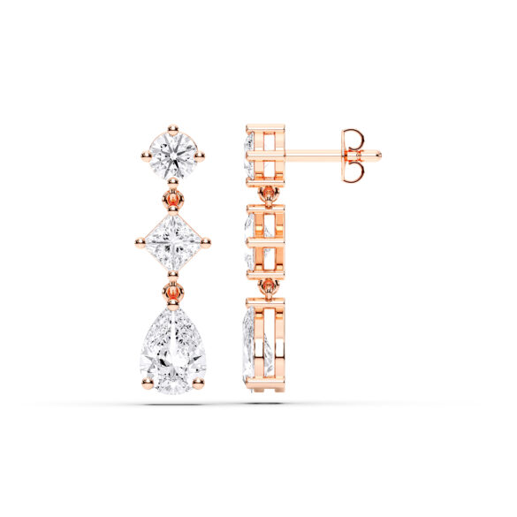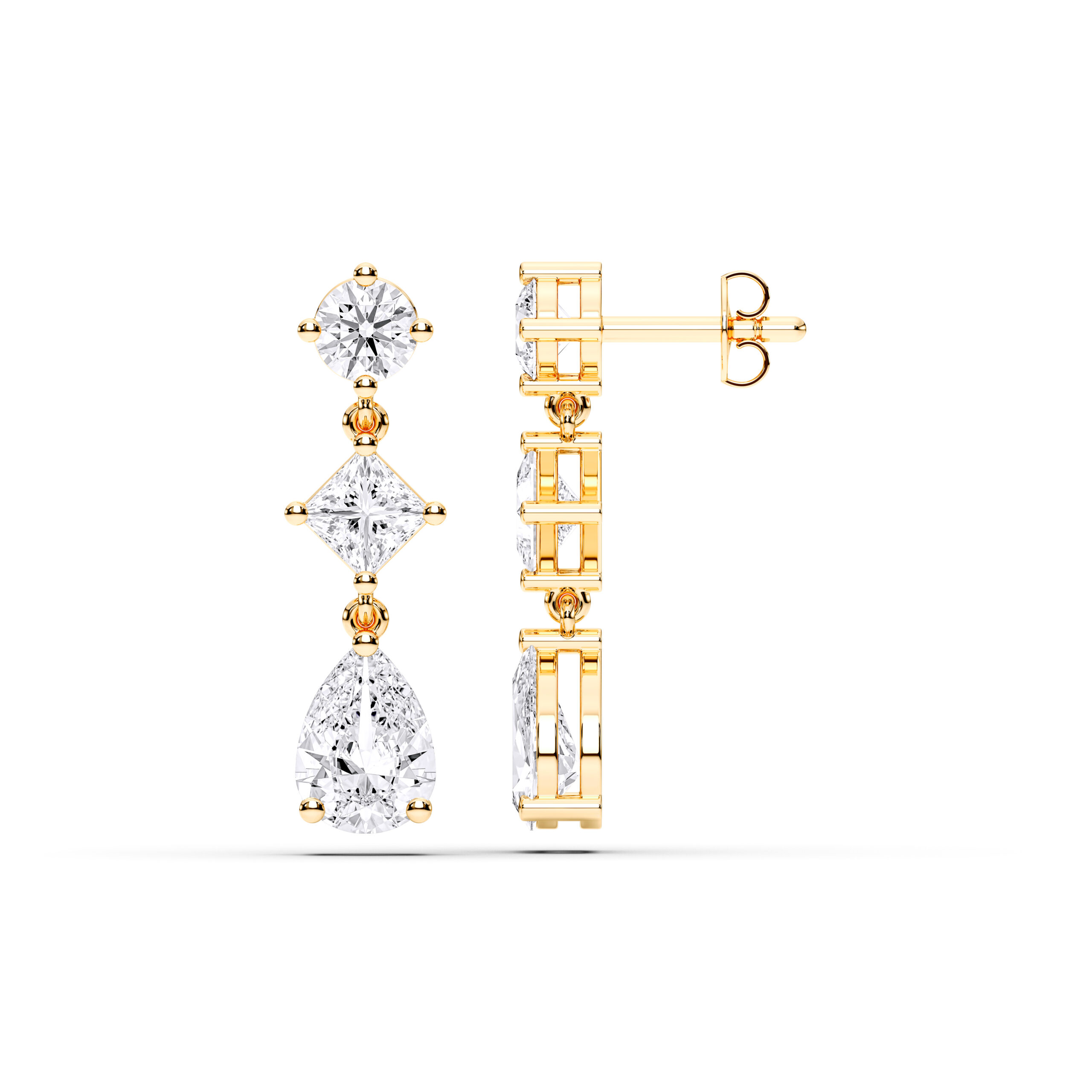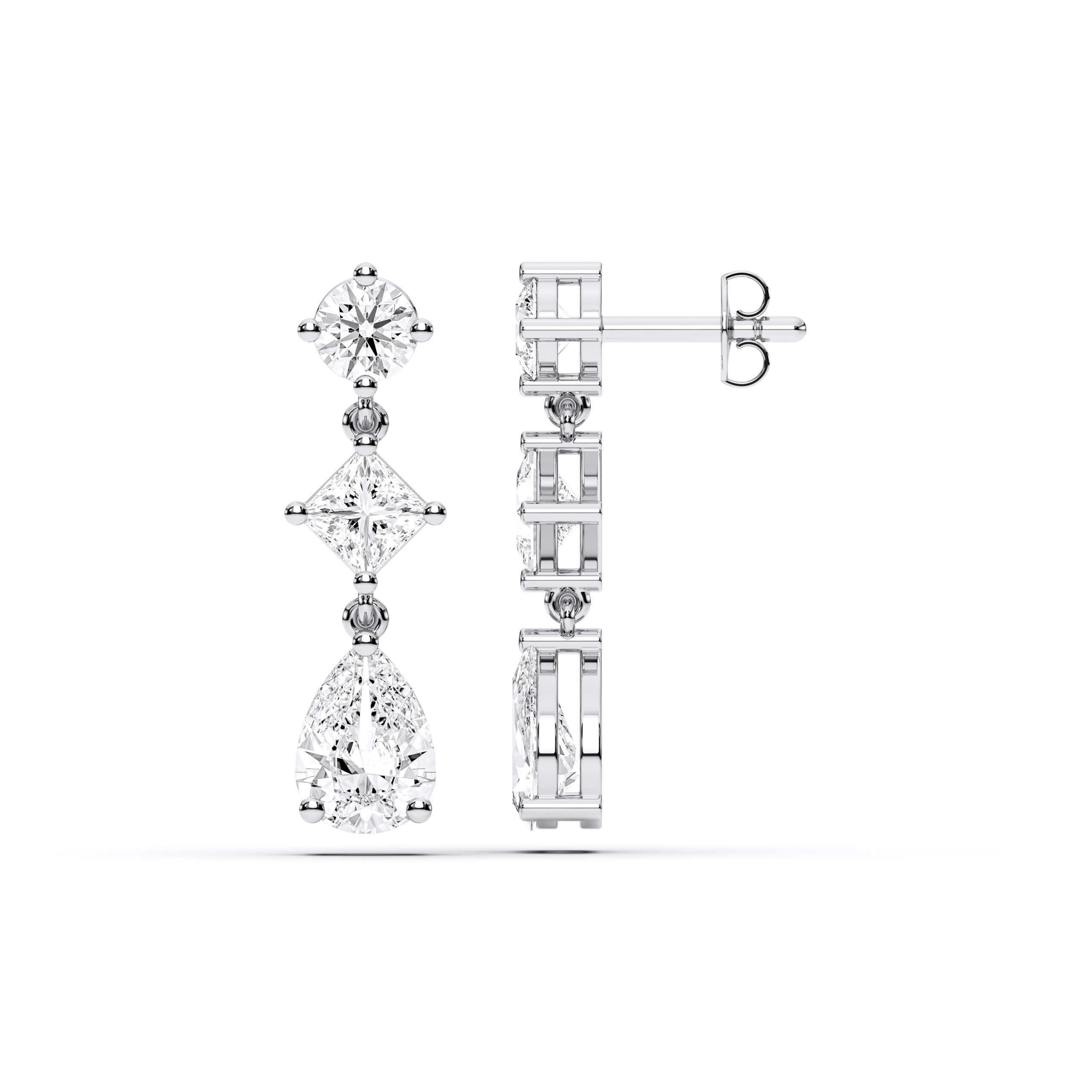 Pear, marquise, and round stones create a rhythmic fall of light, suspended from a delicate hook for effortless elegance.