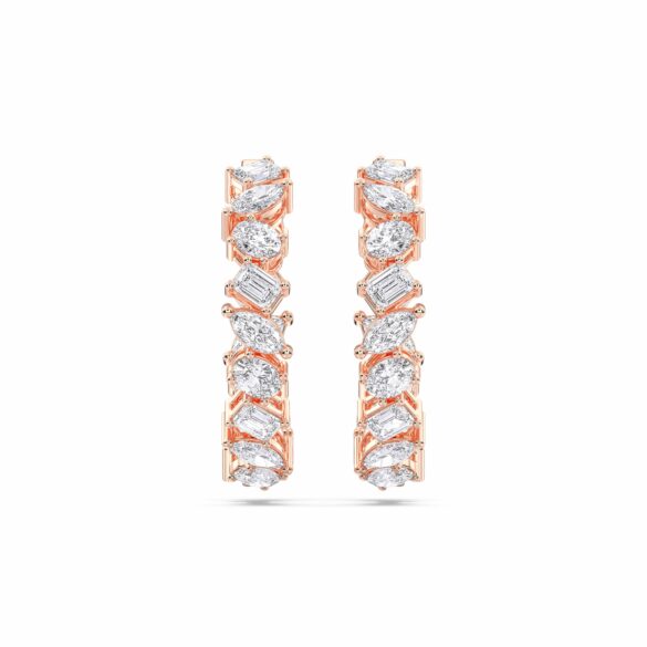 Round, marquise and pear stones alternate along slim gold hoops, catching light from every angle for a playful yet polished vibe.